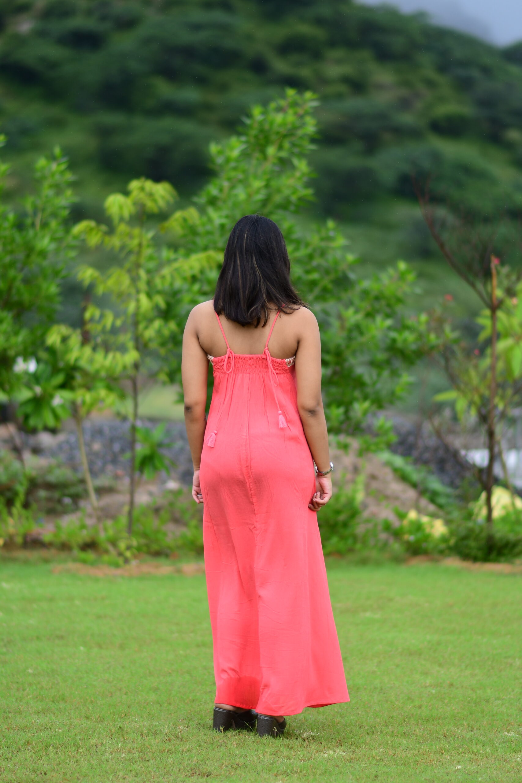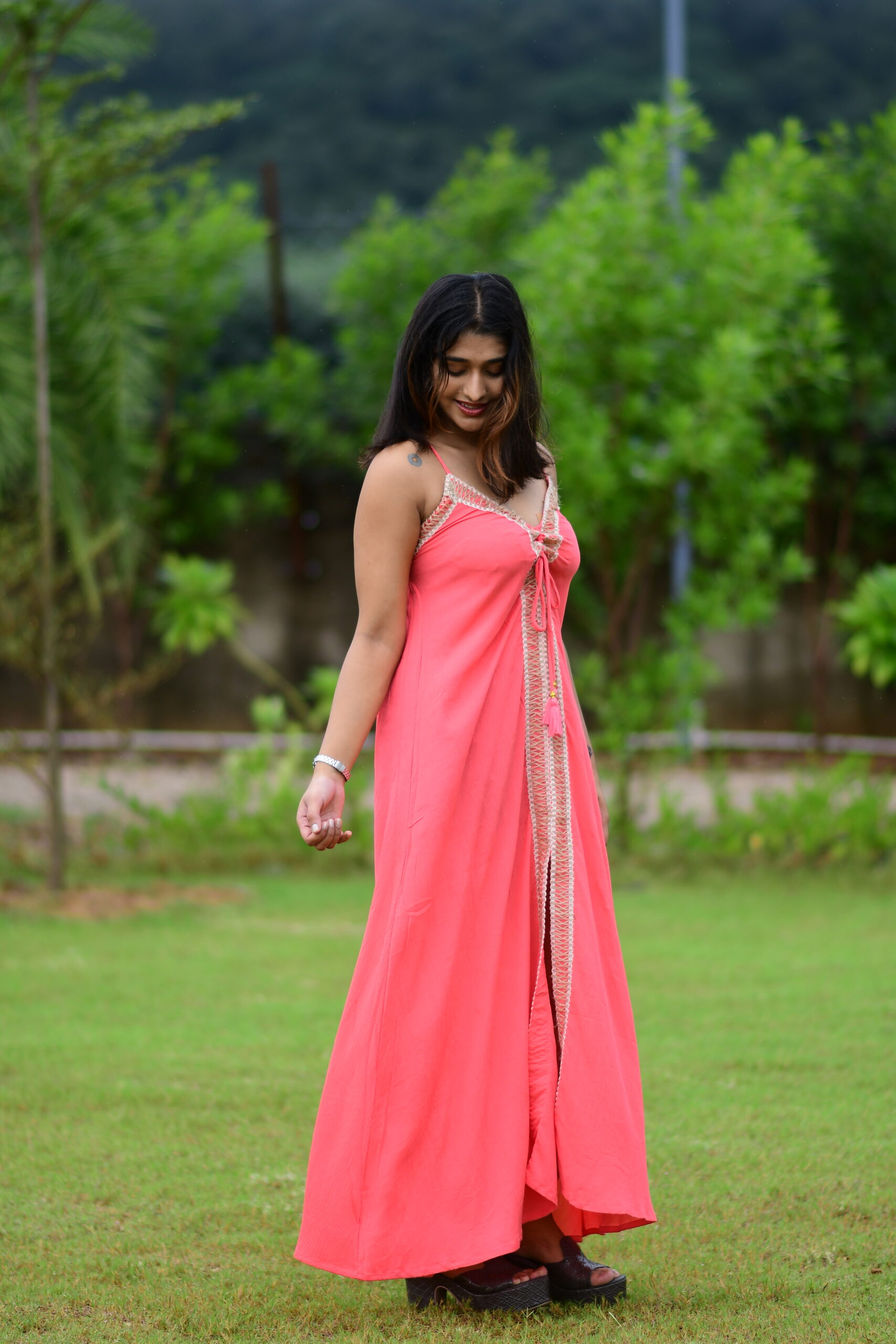Step into effortless elegance with this Coral Pink Sleeveless Long Crepe Maxi Dress, perfect for casual outings, vacations, and summer evenings. Crafted from lightweight and breathable rayon crepe fabric, this flowy maxi ensures comfort while keeping you chic all day long.