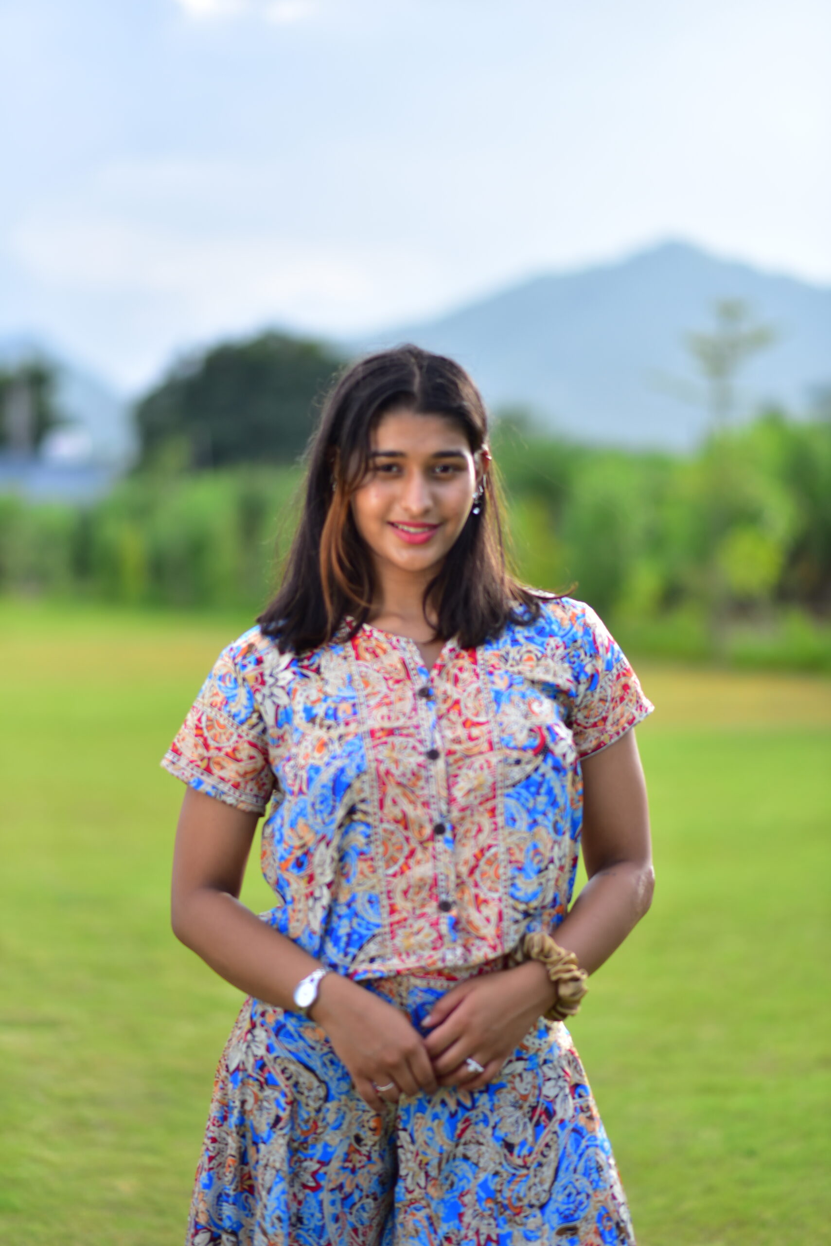Print: Intricate Allover Print – A vibrant, colorful pattern (as seen in the image) with artistic detailing.