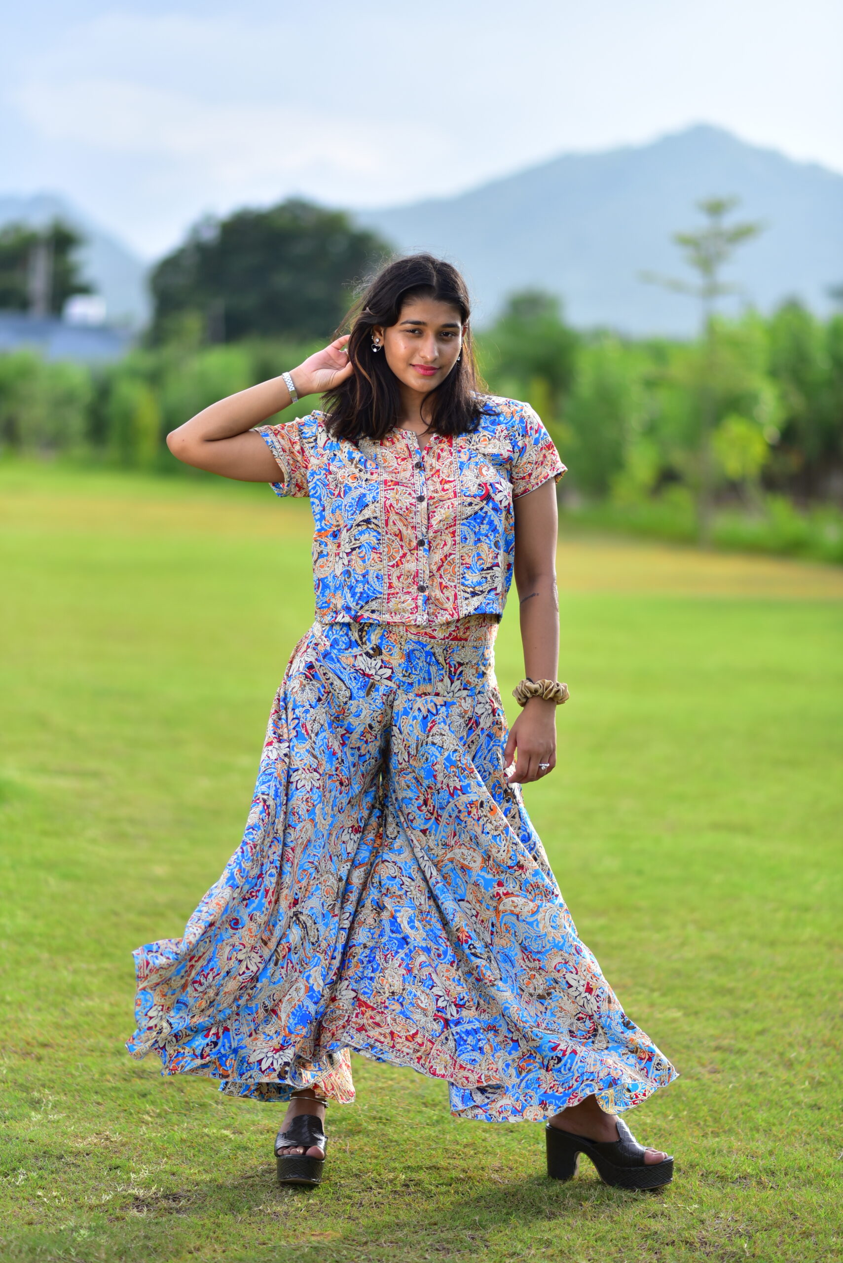 Bottom Style: Ambrella Trouser – Wide-legged, flowy trousers that create a voluminous, skirt-like silhouette for maximum style and movement.