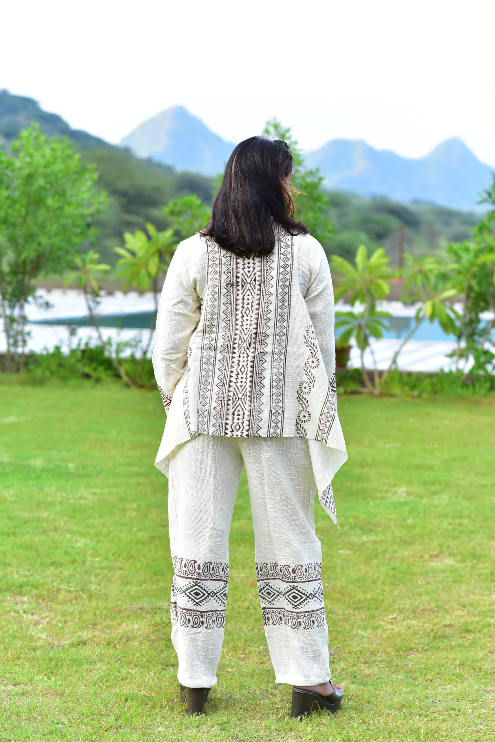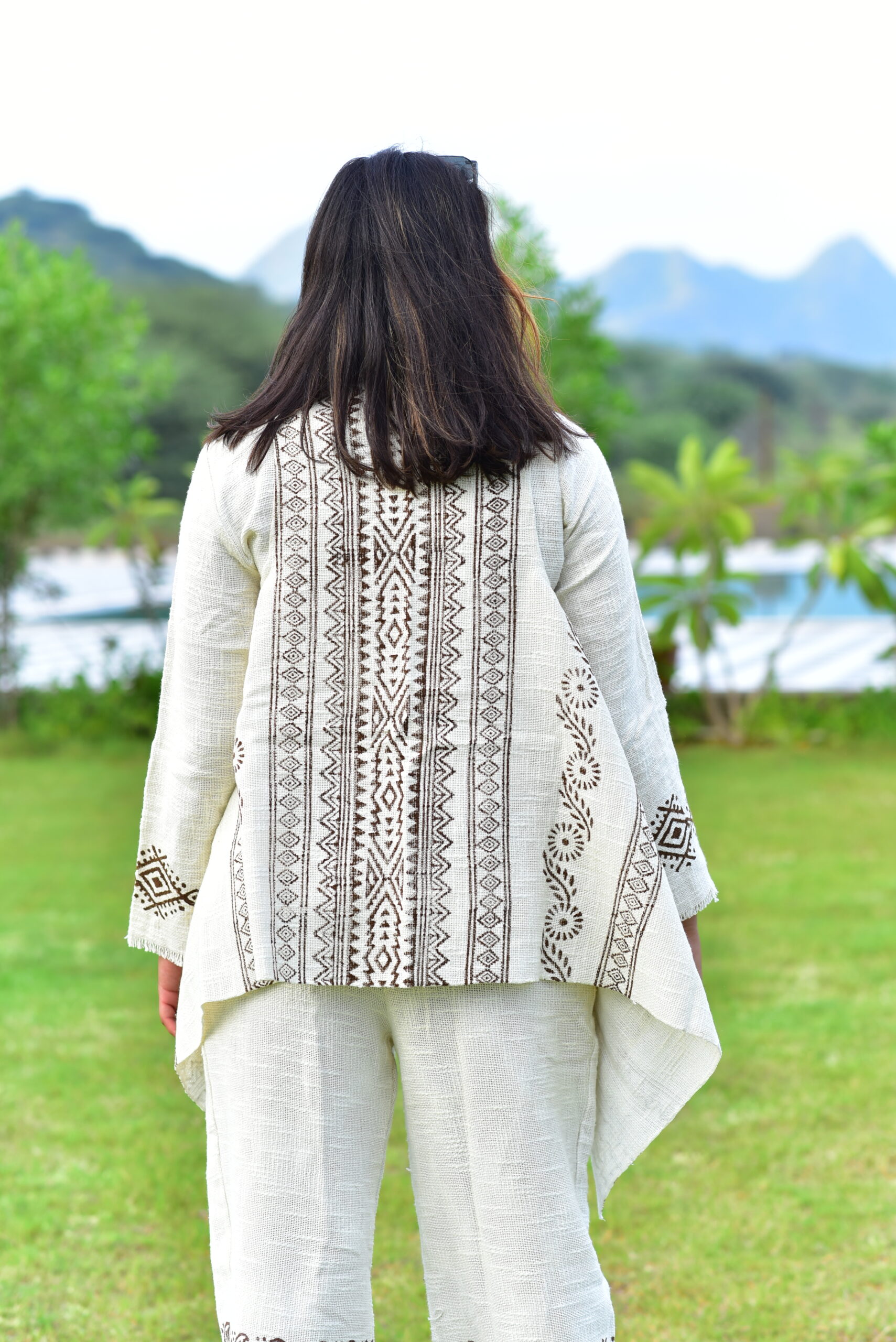 Make a sophisticated and conscious fashion statement with this complete Hemp Cotton Block Print Cord Set – a celebration of heritage art and contemporary design.